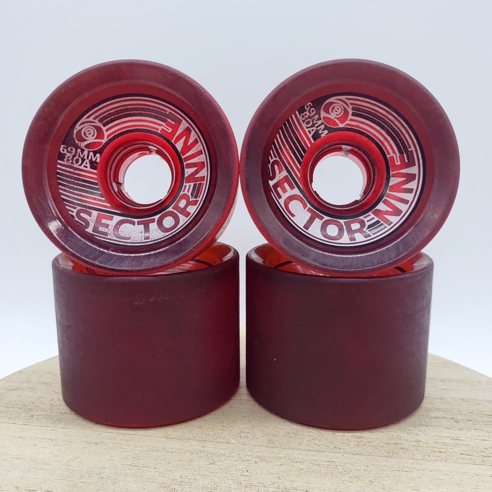 BRAND: Sector 9MODEL: Nine BallsSIZE: 69mmDURO: 80aCONTACT PATCH: BEARING PLACEMENT: SKIN: NoCONDITION: Pre-owned 8/10NOTES: Vintage, Discontinued