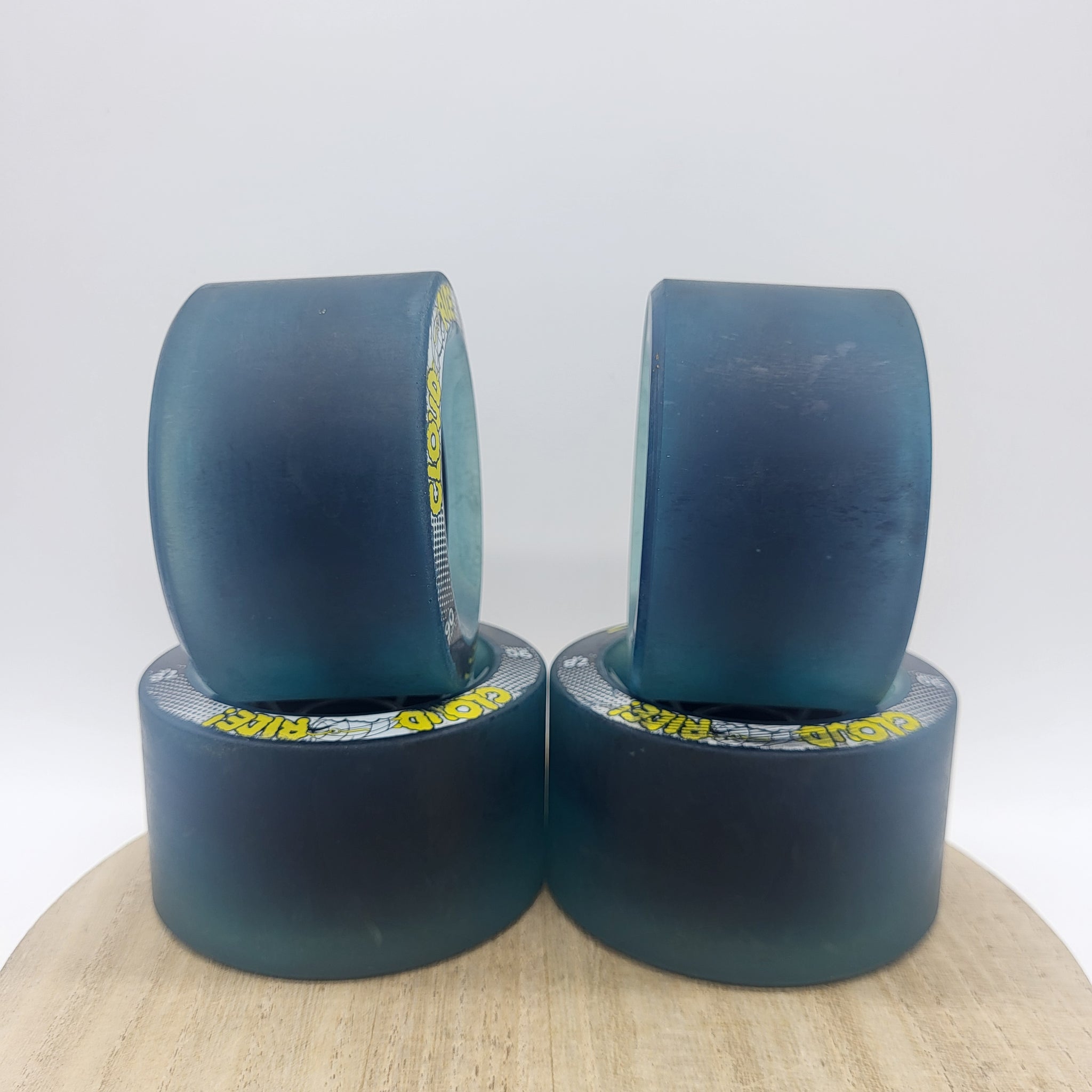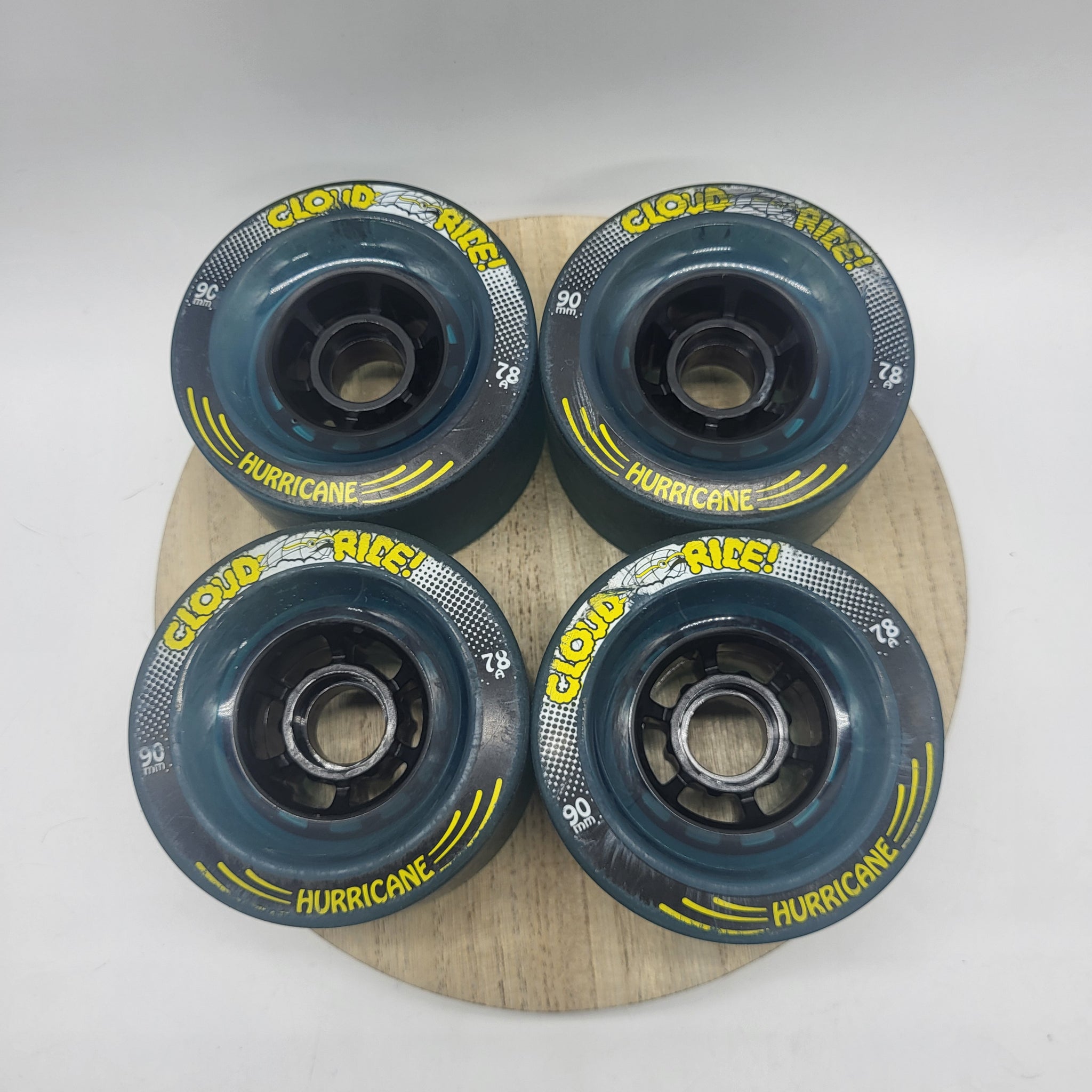 BRAND: Cloud RideMODEL: Hurricane Clear BlueSIZE: 99mmDURO: 78aCONTACT PATCH: BEARING PLACEMENT: Centerset SKIN: Full skinCONDITION: 8/10NOTES: