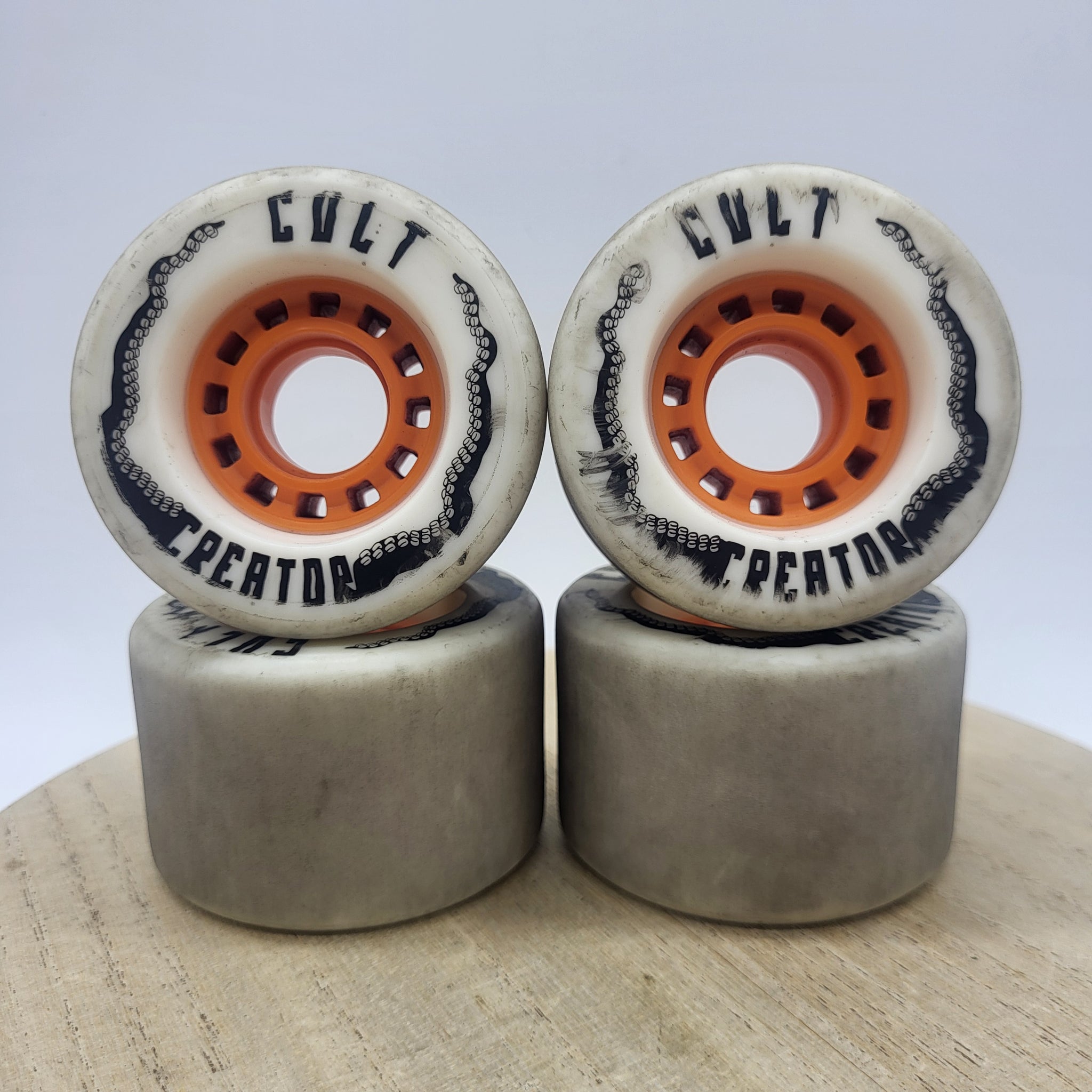 Cult Wheel's Creator shape is a high-end freeride wheel, equally at home on local slide spots and mountain passes. Poured from Cult's legendary "Neurothane" formula in 83A, the narrower contact patch with a big core makes for a loose, slidey ride.