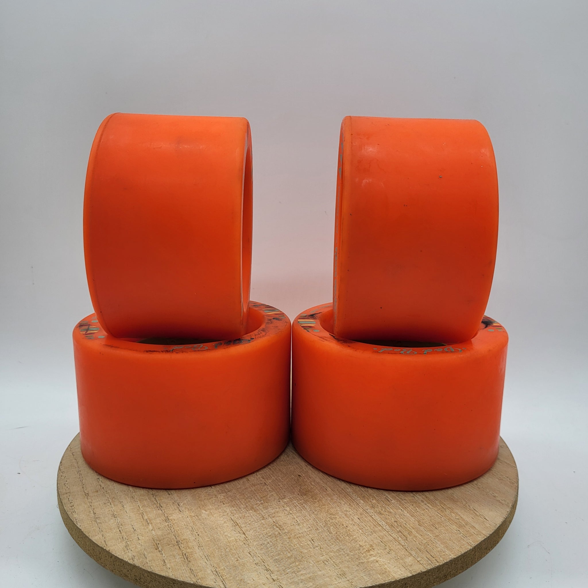 The Orangatang Dad Bod is the most high-performance 100mm+ urethane skateboard wheel in existence. Four years of development, our new TrypoCore, and our tried-and-true Happy Thane formula combine to create the ultimate big-wheel experience at a shockingly light weight. Designed for next-level commuting, long-distance pushing, long-distance pumping, and e-skate, these wheels are meant to roll. The large 105mm diameter provides exceptional roll speed, tons of momentum, smooth rolling, and absurd distance per push—it's kinda like cheating. Just add risers!